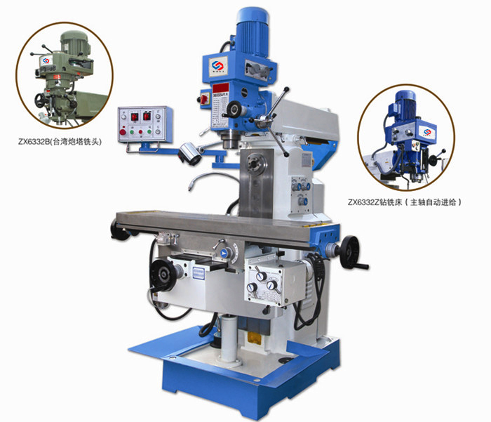 ZX6332鑽銑床(炮塔銑床) ZX6332鑽銑床爲方形箱體的多功能鑽銑床, 也是多功能的立卧兩用的工具銑床,可鑽可銑可镗可磨,真正實現一機多用,可根據客戶需要選配自動進刀機頭或台灣高速炮塔銑頭,工作台可選配前後左右自動進刀!也可電動升降,或加裝數顯尺! 适用於各種中小型零件加工,特别是有色金屬材料;塑料;尼龍的切削,具有結構簡單,操作靈活等優點,廣泛用於單件或是成批的機械制造;儀表工業;建築裝飾和修配部門。 鑽銑床是一種中小型通用金屬切削機床,即能卧銑,又能立銑。它适用於鑽、擴、鉸、镗、孔加工;如用圓片銑床、角度銑刀、形成銑刀及端面銑刀,能銑削平面、斜面、垂直面和溝槽等。裝上附件立銑頭後,可作爲多方向的銑削工作。在裝上附件分度頭後,可作摸數m=3毫米以下的直齒、錐齒輪及螺旋齒等的銑削工作。由於本機床應用廣泛,故适合一般修理與工具車間;單件或小批生産車間使用爲宜。 1.可實現立、卧銑兩種加工功能。 2.銑頭可配置炮塔銑床頭,調速範圍廣,主軸套筒具有自動、手動、手動微調等進給功能。 3.工作台X、Y、Z三方向機動進給。 4.X、Y、Z三方向導軌副超音頻淬火、精密磨削。 5.手動潤滑裝置可對絲杠及導軌進行強制潤滑。 ![]() ![]()